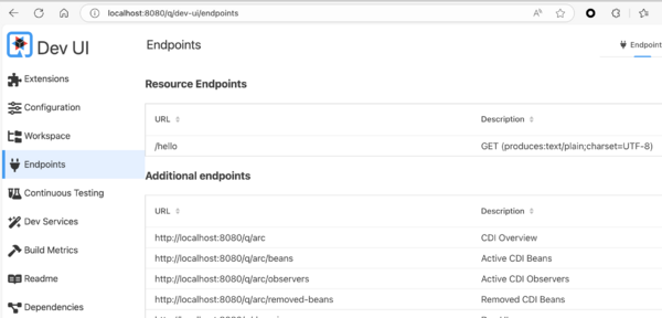 Access DEV UI: http://localhost:8080/q/dev-ui/