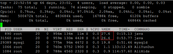 38200 work 20 0 27.2g 10.4g 11480 S 774.6 4.1 782100:51 java | |||