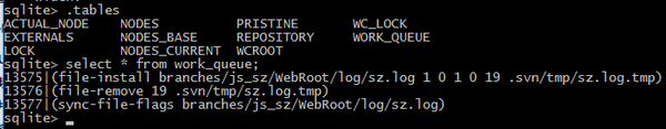 cd c:/xxx/.svn sqlite wc.db delete * from work_queue
